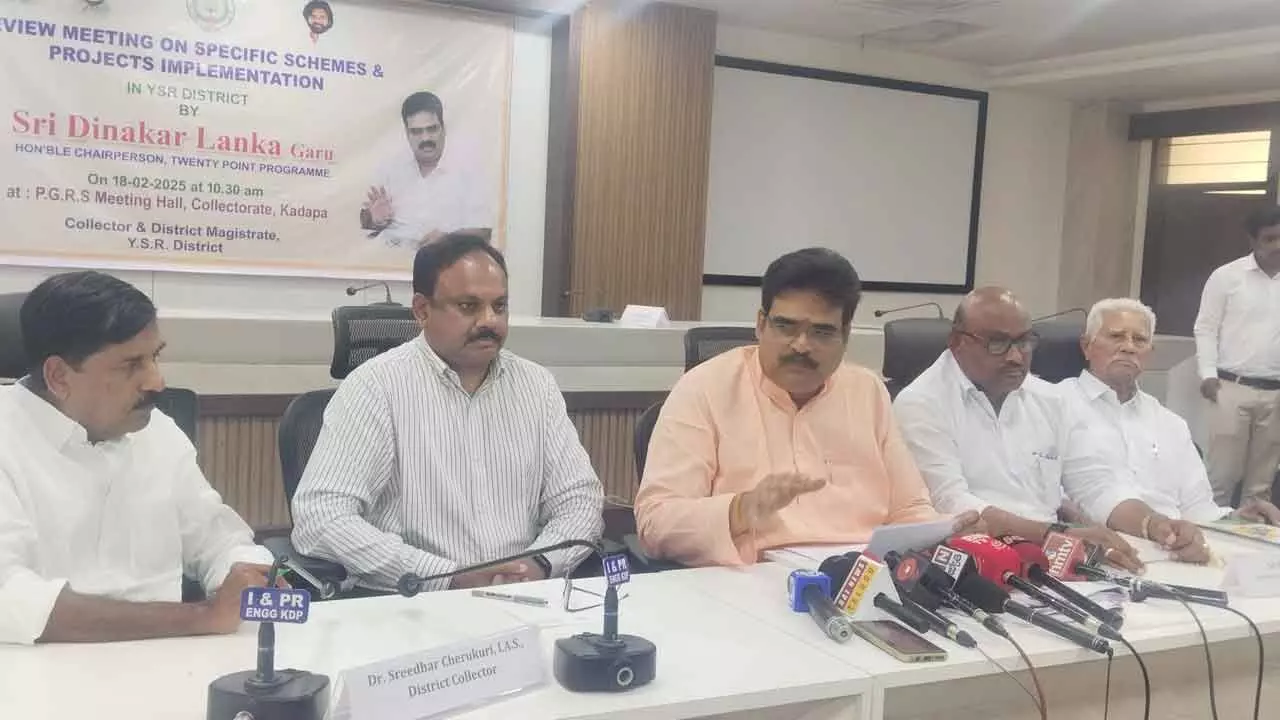 Kadapa: Lanka Dinakar, Chairman of the 20-Point Programme, along with District Collector Dr Cherukuri Sridhar, conducted a review meeting on Central schemes and infrastructure projects in Kadapa on Tuesday.