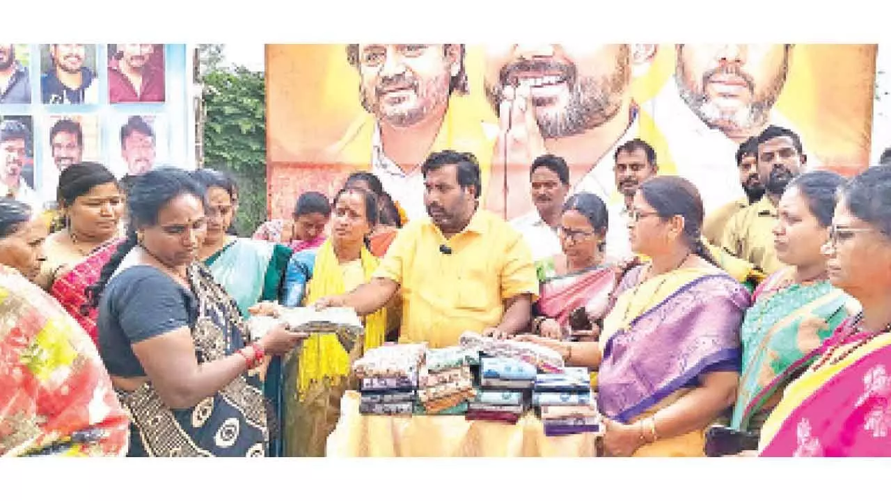 Sarees distributed to celebrate Lokesh’s birthday