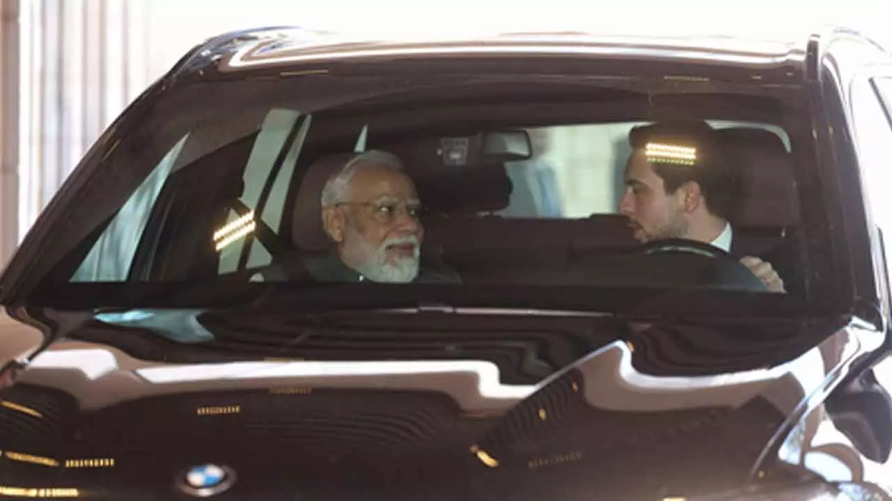 In a special gesture, Crown Prince Al Hussein Bin Abdullah II drove Prime Minister Narendra Modi to The Jordan Museum on Tuesday. The Crown Prince is the 42nd generation direct descendant of Prophet Mohammad.