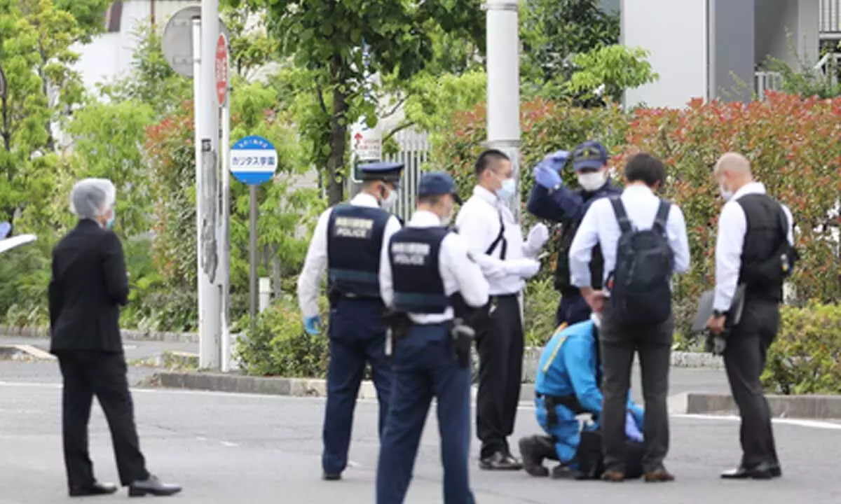 The man, believed to be in his 40s, was arrested a few hundred meters away from the spot on suspicion of attempted murder. One of the victims, a company employee, was in critical condition while the other, a court enforcement officer, suffered minor injuries, Japan's Kyodo News reported.
