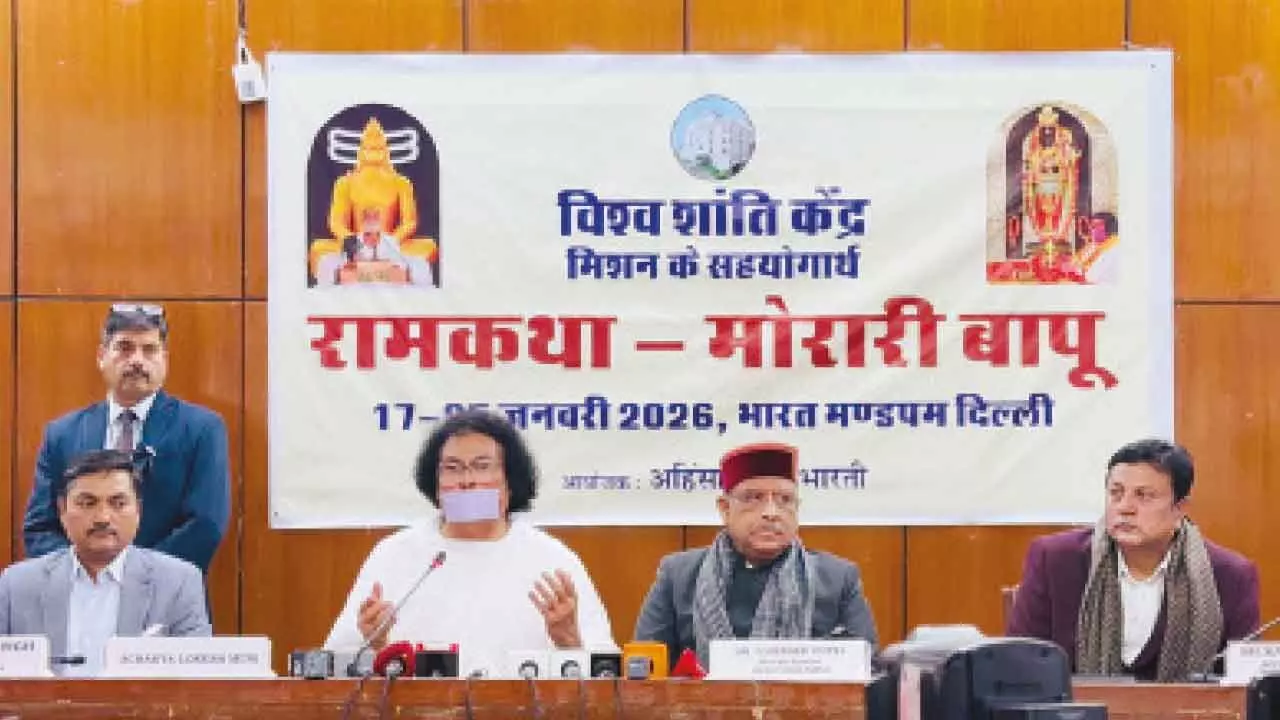 During the press interaction, information was also shared about a major cultural and spiritual event scheduled for January 2026. Acharya Lokesh, founder of Ahimsa Vishwa Bharti, announced that a nine-day Ram Katha will be organised at the multi-purpose hall of Bharat Mandapam in New Delhi from January 17 to January 25. The event will be held under the World Peace Mission and will feature discourses by noted Ram Katha exponent Morari Bapu.