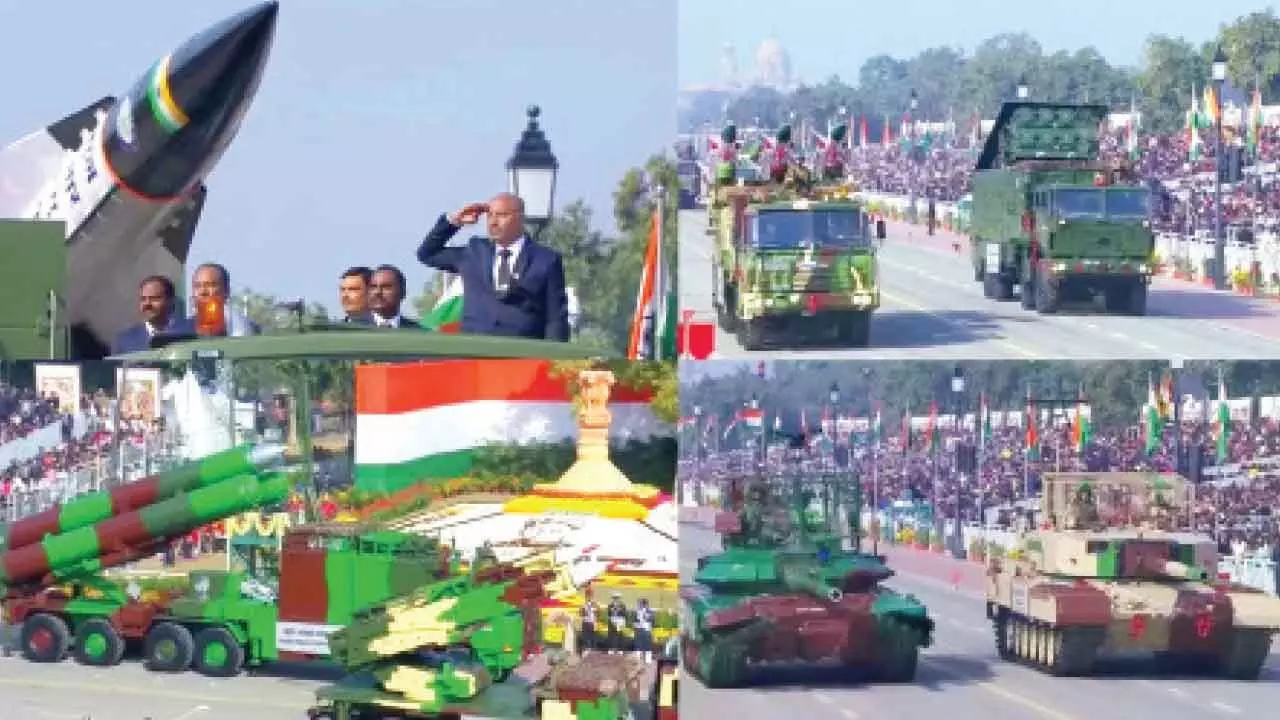 New Delhi: India ushered in its 77th Republic Day on Monday with a grand display of its cultural heritage, economic growth and military might that included warplanes, indigenously-built missiles, newly-raised units and lethal weapons used during Operation Sindoor.