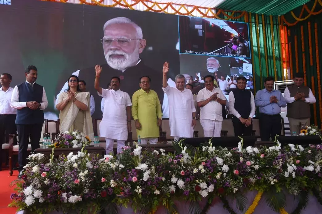 Prime Minister Narendra Modi flags off the Amrit Bharat Express between Brahmapur in Odisha and Udhna in Gujarat, boosting rail connectivity and development.
