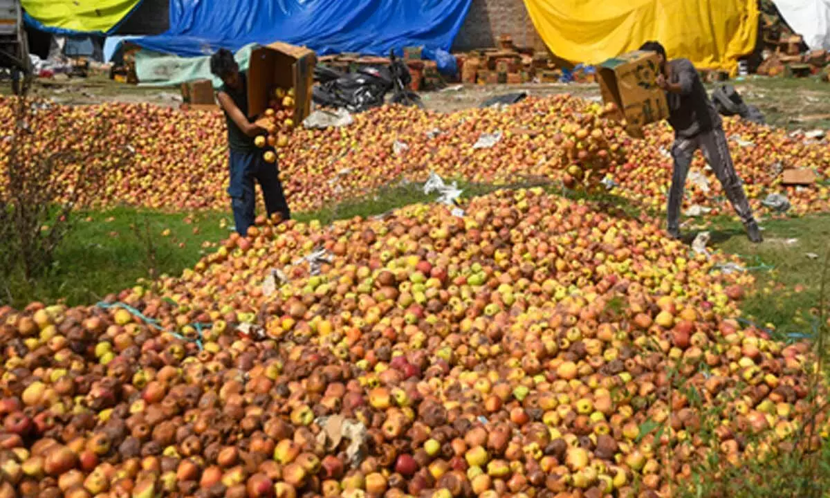 Due to an extended dry spell followed by unprecedented floods closing the Srinagar-Jammu highway, the apple crop in the Valley suffered heavily, resulting in the lowest ever fruit prices for the growers and traders.