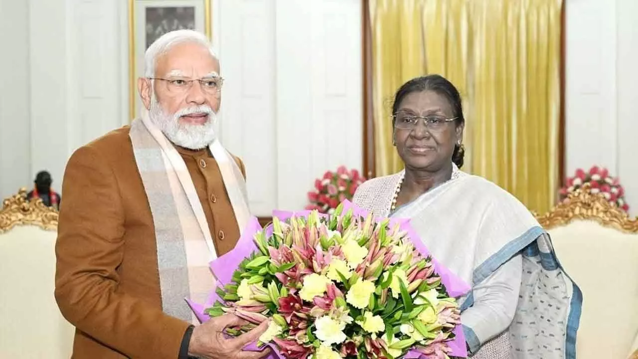 New Delhi : Prime Minister Narendra Modi on Friday called on President Droupadi Murmu at the Rastrapati Bhavan here. The President's office shared pictures of the meeting in a post on X. "Prime Minister Narendra Modi called on President Droupadi Murmu at Rashtrapati Bhavan," it said.