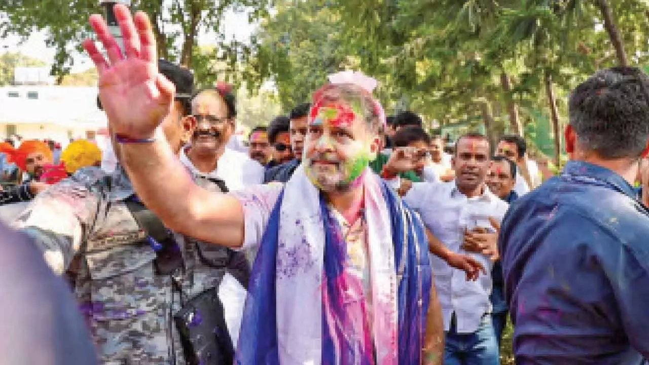 Rahul celebrates Holi with Cong workers at party office