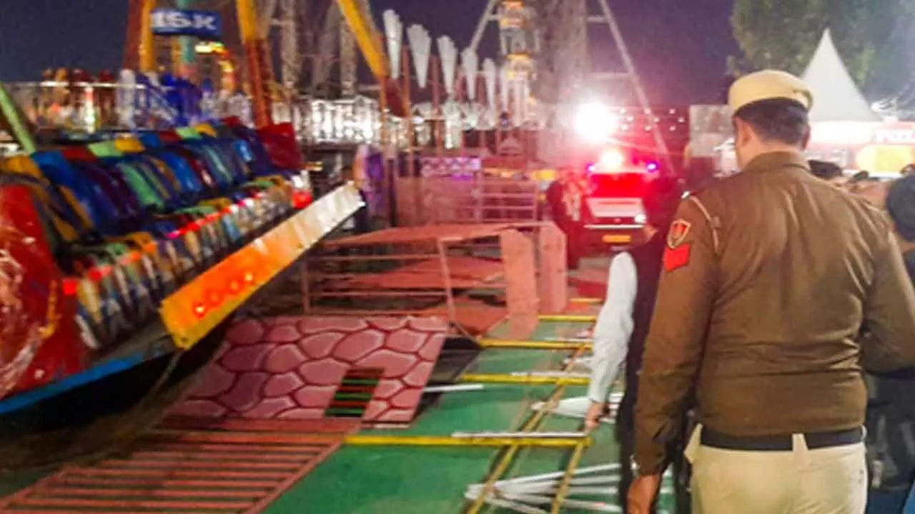 A giant swing collapsed at the Surajkund mela in Faridabad, killing Inspector Jagdish Prasad during rescue operations and injuring 12 people. A case has been registered against Mohammad Shakir, proprietor of Himachal Fun Care Company, for culpable homicide not amounting to murder and other relevant sections.