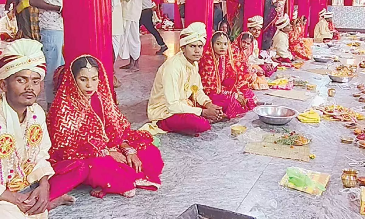 Berhampur: In a touching celebration of compassion, dignity and social harmony, 15 orphaned, neglected and economically disadvantaged girls of Ganjam district, including two physically challenged brides, stepped into a new phase of life through a solemn mass marriage ceremony held at Geeta Bhavan on Friday.