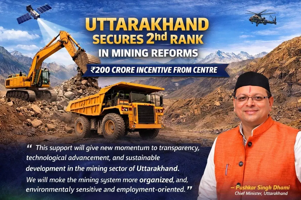 Uttarakhand, under Chief Minister Pushkar Singh Dhami, ranks second nationally in mining reforms as the Centre releases ₹200 crore under the SASCI scheme to boost transparency, technology, and sustainable mining.