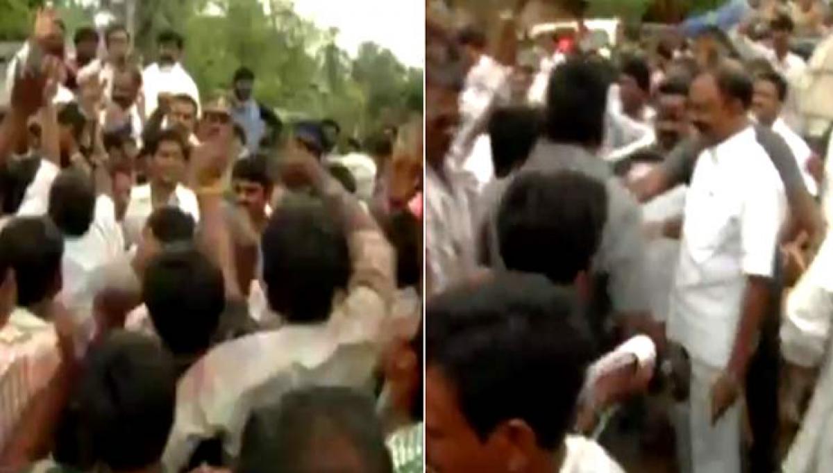 Machilipatnam villagers throw sand at AP PCC Chief Raghuveera Reddy