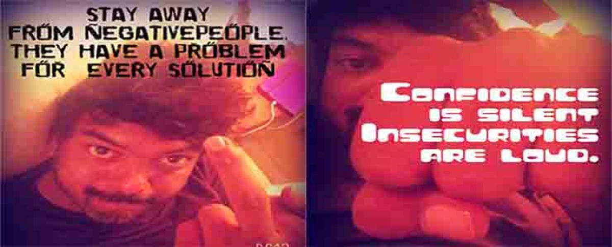 — puri jagan (@purijagan) August 29, 2015 He was back with a few more interesting tweets today. Today, he chose to comment on negative people. "Stay away from negative people. They have a problem for every solution," Puri tweeted along with a symbolic picture. Perhaps Puri Jagan wants to silence the people who is spreading negativity about him.