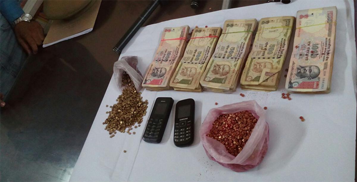 The principal accused Kumar alias Ramu used to befriend business people. The accused used to produce original gold at first and after gaining confidence of business persons, they pledged the fake gold. On a tip-off that the accused were trying to take a businessman for ride, the Chaderghat police laid a trap and apprehended one of the accused Nagaraju and seized from him two mobile phones and cash of Rs 4 lakh from his possession.