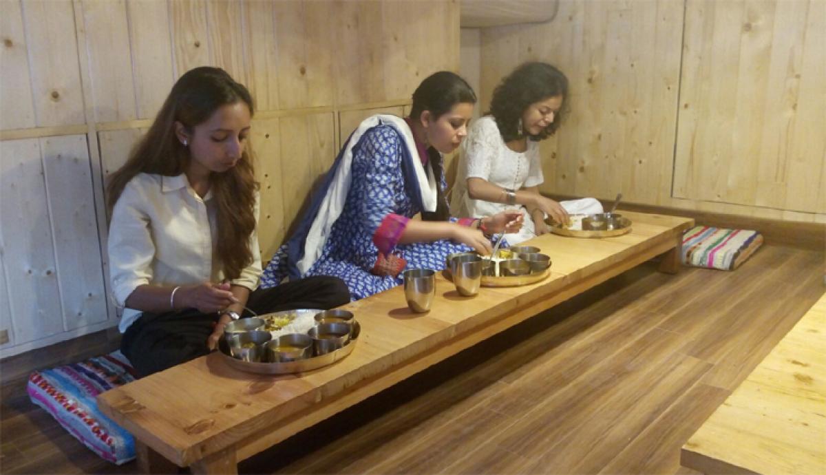 There is one other attraction of the eatery. If you want to enjoy Himachali food by sitting on the ground, the typical way of eating, there is a rooftop with wooden floor.