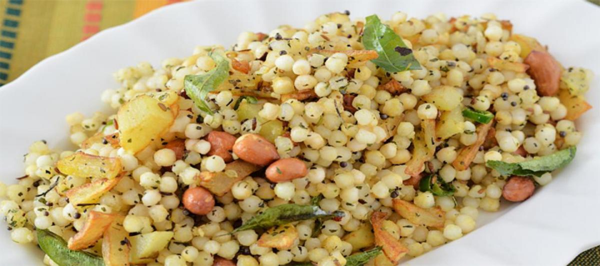 Wash sabudana two to three times and then soak in one-cup water for three to four hours. Sabudana grains should be separate and moist. Roast peanuts on a hot griddle, peel off the skin and then grind coarsely.