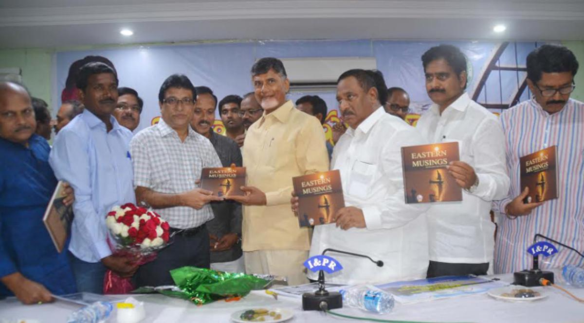 Chief Minister N Chandrababu Naidu on Thursday released Eastern Musings- a collection of stories from 2005-2015 written and sketched by senior journalist BVS Bhaskar. The book was published by Adikavi Nannaya University and supported by Balakavi Educational Seva Trust (BEST).