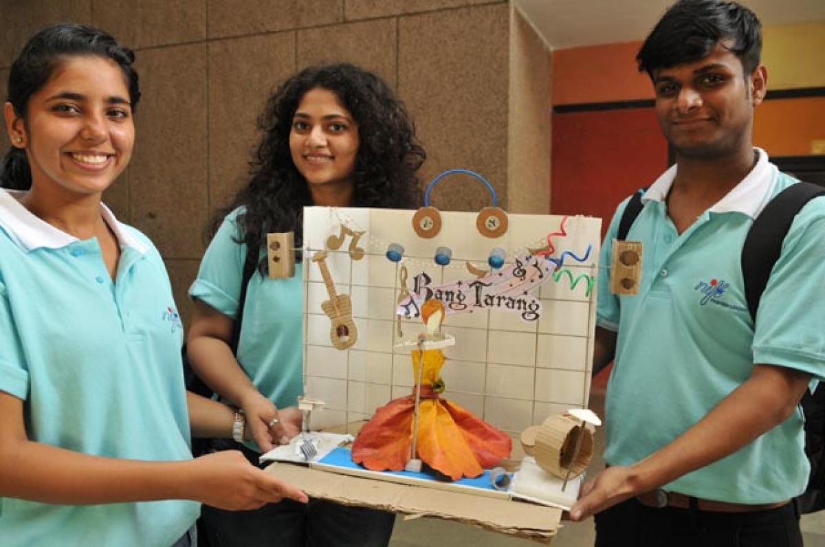 “I am conducting a competition where students have to use their creativity and design a new product using junk material related to the announced theme, music. I find freshers very energetic and have lots of talent to display. I even feel the students are enjoying the competition,” fashion designer and NIFT faculty, Srisha Pagadala, said.