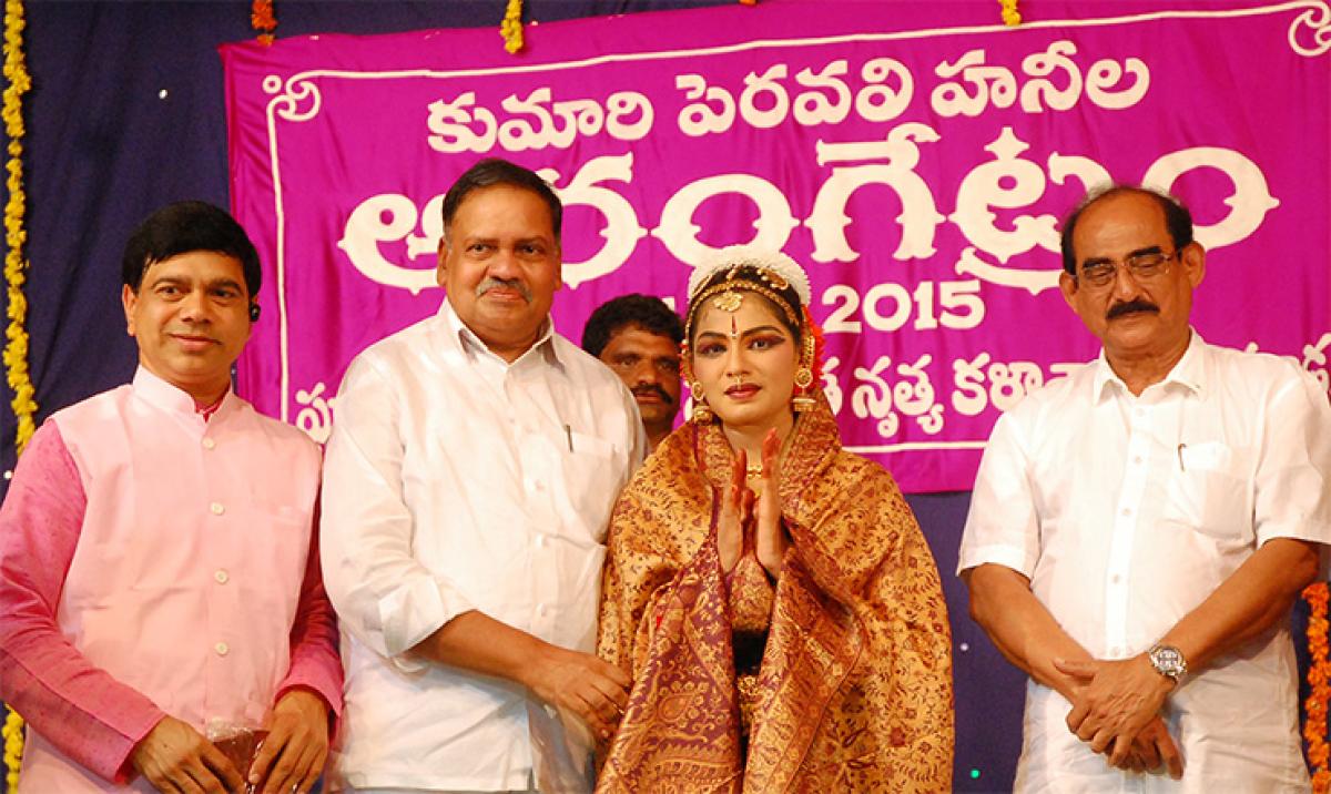 Haneela who is a BTech (Architecture) student, has a diploma in Bharatanatyam. Later, her Gurus Hemanth Kumar and his wife Padmasri were felicitated. Participating in the programme as chief guest, Deputy Speaker of Assembly Mandali Buddha Prasad congratulated Haneela for her performance and advised her to focus on practice to scale greater heights. MC Das presided. Kuchibhotla Anand, chairman of Kuchipudi Natyaramam, SB Rao, Dean of Delhi Public School and others were present.