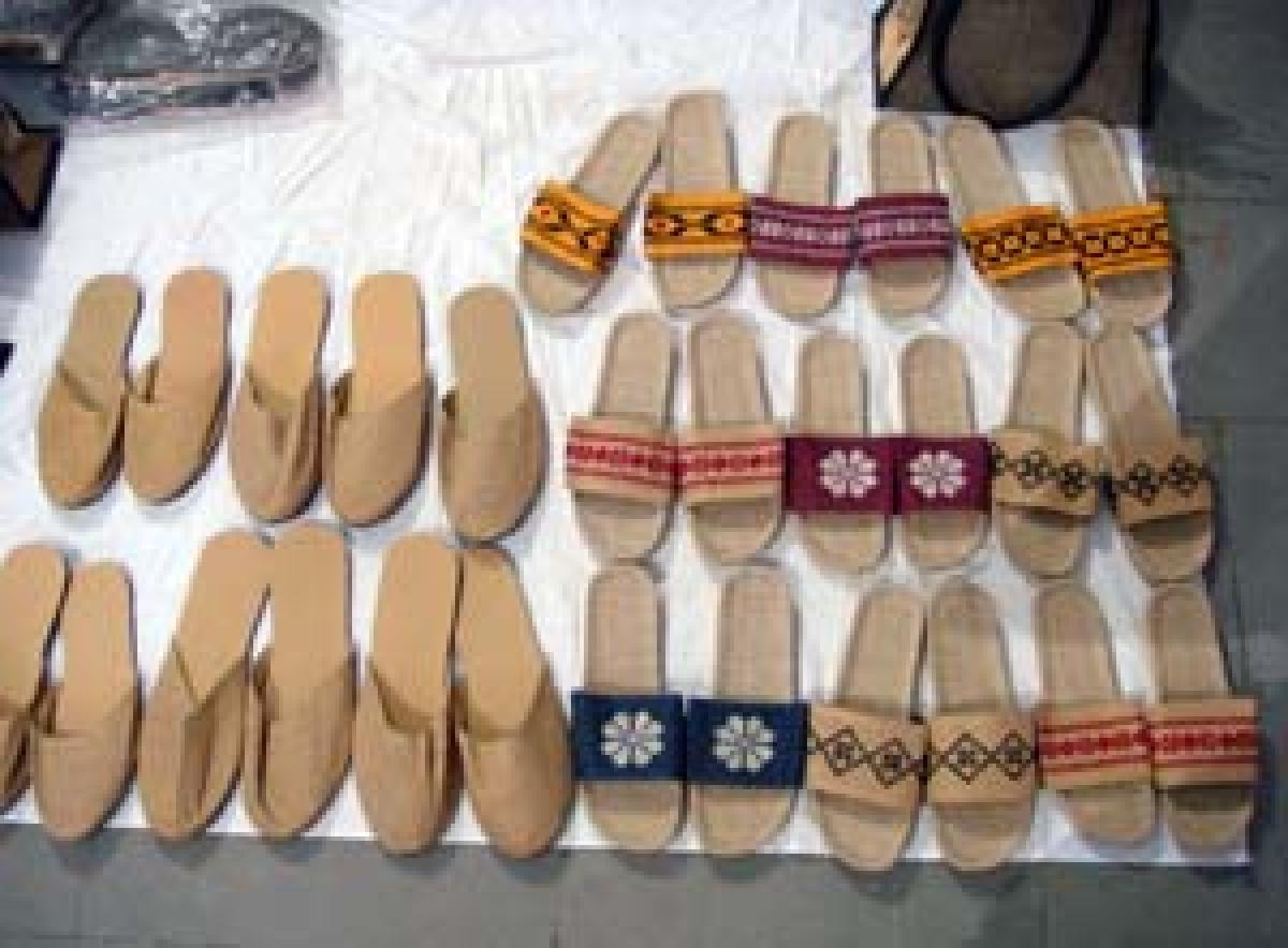Designer grass mats made of golden grass; Khesh sarees, handmade stone jewellery and prepuja collection are some of the highlights of the exhibition. Besides promoting the handicrafts, the exhibition, which is being organised by NARI (Non-formal Action Research Institute), is stressing to shun plastics and use jute and other eco-friendly products. Swayambhar NARI was started as a voluntary group for providing marketing facilities to craft persons. Today, it has more than 1,000 members.