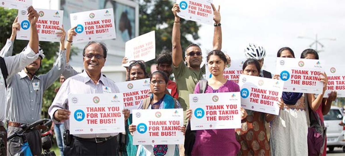 In an effort to battle vehicle pollution, end traffic clogs and promote use of mass transport, Hyderabad took a positive step to be part of the first ever Car-Free Thursday. The campaign was initiated by Hyderabad Software Enterprises Association (HYSEA) and Telangana State Road Transport Corporation (TSRTC) and other IT industry associations.