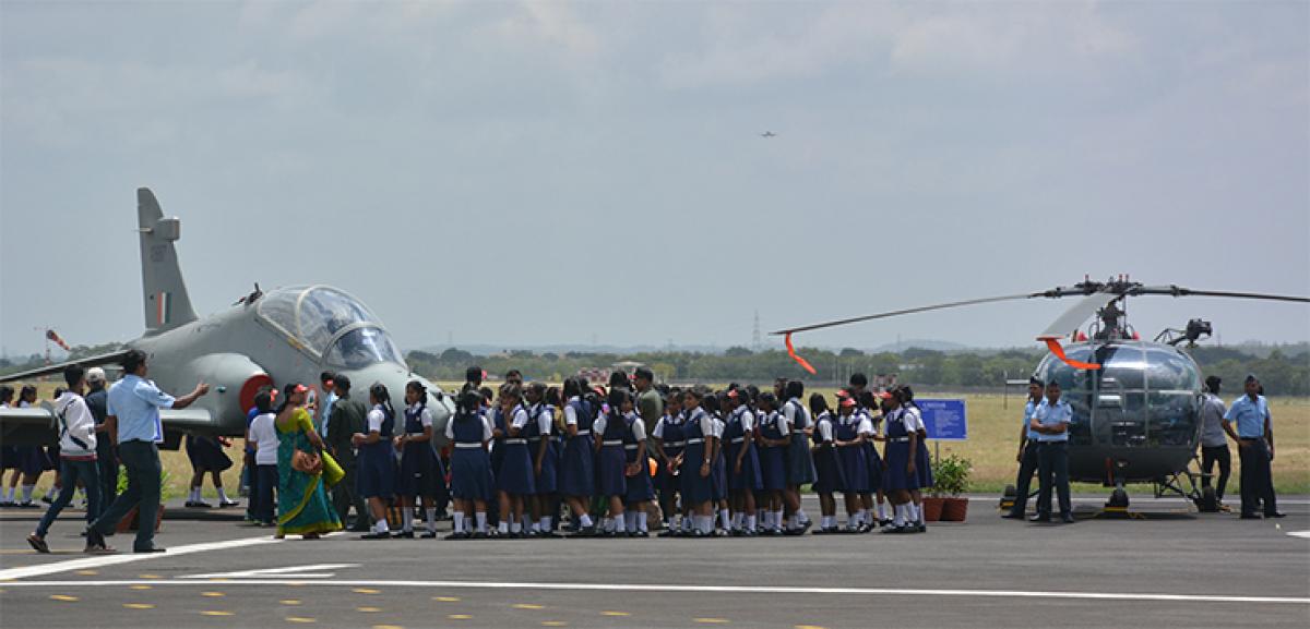 It is not every day that schools students get a chance to witness fighter jets and helicopters from close range. This was made possible by the Air Force Station Hakimpet on the eve of Independence Day. Close to 7,000 students from twenty-five schools and colleges from the twin cities made it to the Air Force Station on a bright Friday morning. Selfies with gunmen of the Quick Reaction Team, in front of helicopters and fighter planes was the order of the day.