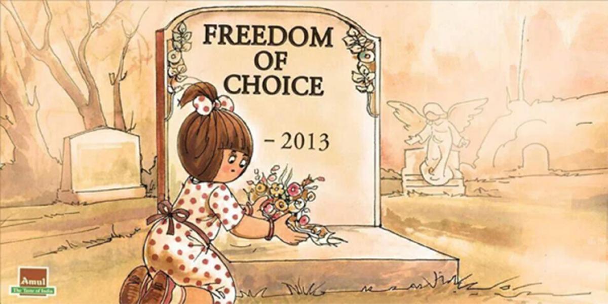 Besides this, Amul has had some thought provoking and anti-authoritarian print ads like the one in 2013, where the Amul girl bids an adieu to freedom of choice after the Supreme Court overruled the verdict of Delhi High Court and criminalised homosexuality again. Other bold print ads by Amul are the ones dating back to the 1970s, which condemned virginity test of Indian women at UK airport.