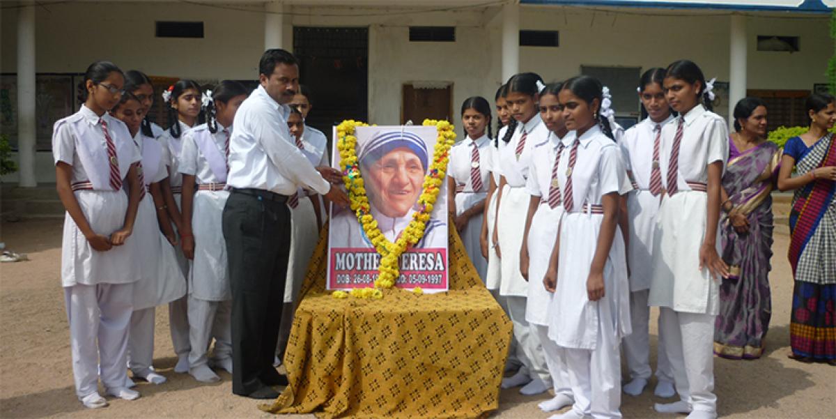 The 105th birth anniversary celebrations of Mother Teresa was organised at Satyasodhak School on Wednesday. School’s principal Narsiah and the students garlanded the portrait of the Mother and paid rich tributes to her. “Mother Teresa was known for her great service to humanity. She strived for the well-being of all and treated everyone as her child,” he said.