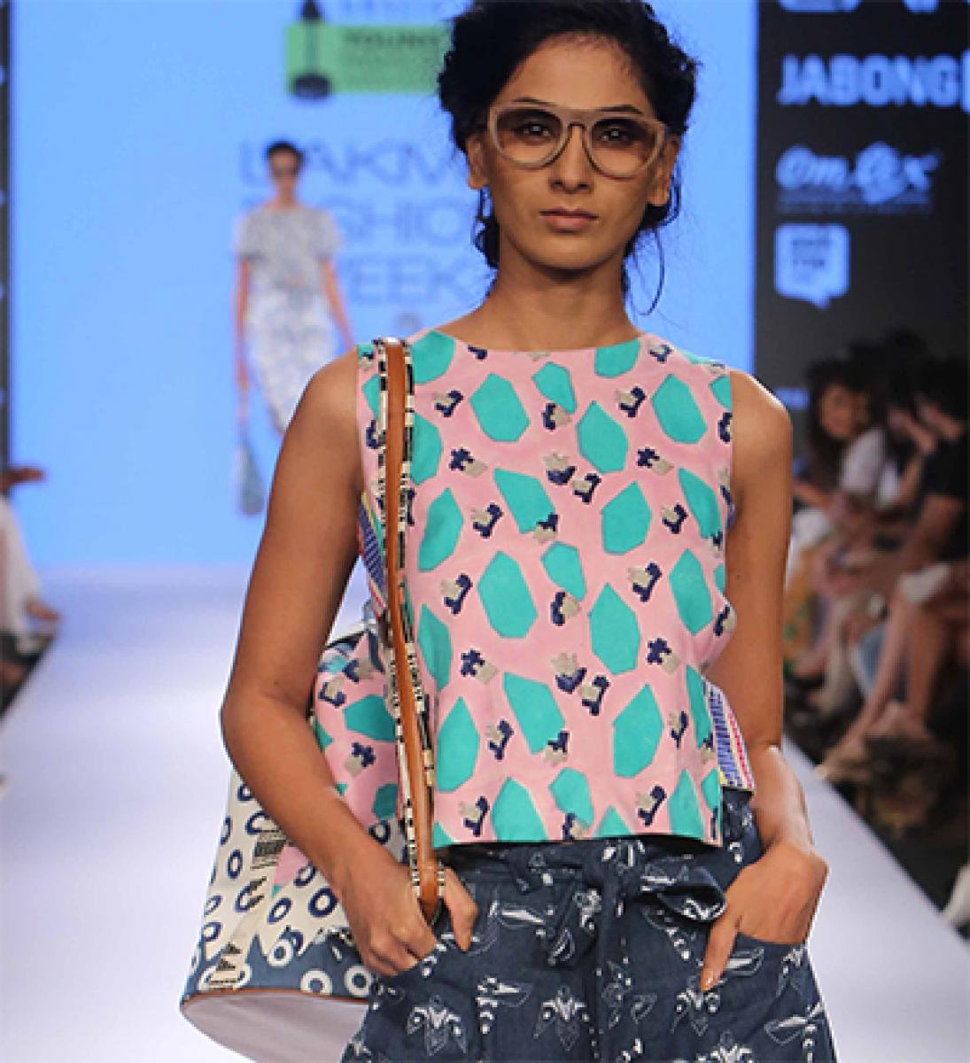 The designing duo’s label ‘Jodi’ scored in the Label Alert Category. Inspired by the 1970’s look, the collection, revealed print inspirations from Ashley Goldberg along with geometrics, squiggles, flora and fauna. The colours were vibrant pink, cerulean, blue, sea green, torch red, blood orange, yellow and indigo. ‘A’ line minis, roomy pants, cut out tops, had hand block Jaipura prints. Totes, clutches, back packs and slings with prints, fringes and patch work complemented the garments.