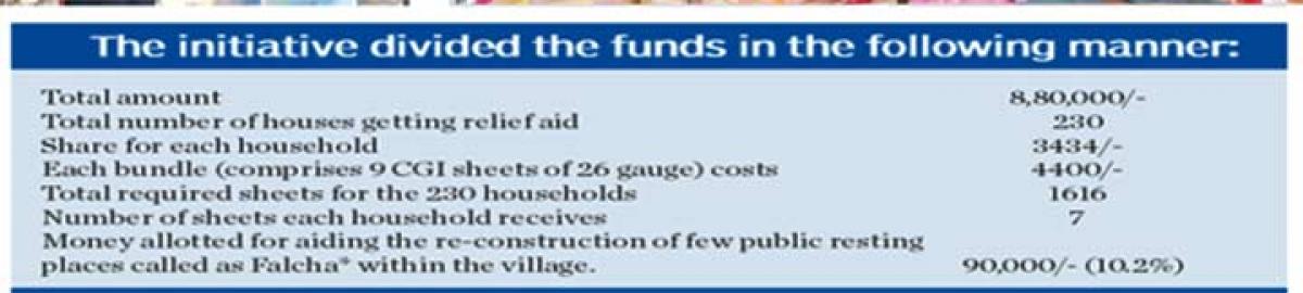 People were staying in polythene covered tents in open spaces, which were vulnerable to even small amounts of rainfall. Addressing this issue, the initiative collected a total fund of R. 5,50,000 (Indian Rupees) equivalent to Rs 8,80,000 (Nepali rupees) and supplied corrugated galvanised (CGI) sheets to the victims to build temporary shelters that were sturdy enough to face monsoons.