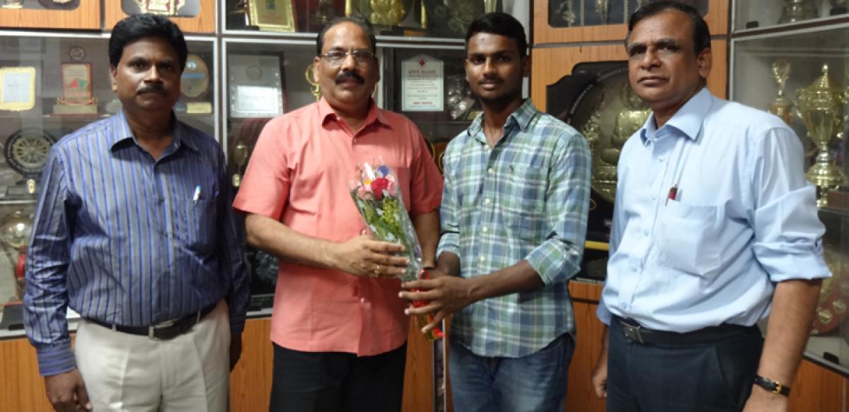 Principal MVN Padma Rao said Kowshik who played U-19 national School Games last year, represented the college in several district and university level cricket tournaments. Siddhartha Academy president N Venkateswarlu, secretary P Lakshmana Rao, college convener PLN Prasad and director Vemuri Babu Rao congratulated Kowshik for his achievement.