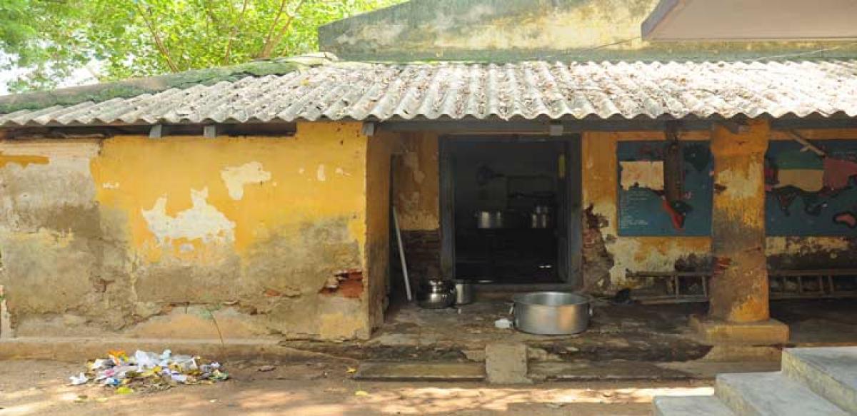 The kitchen shed of Padarthi Sundaramma Girls High School in One Town is in a poor state. Mid-day meal for students of neighbouring Gandhi Municipal High School is also prepared at the kitchen, which needs urgent repairs.