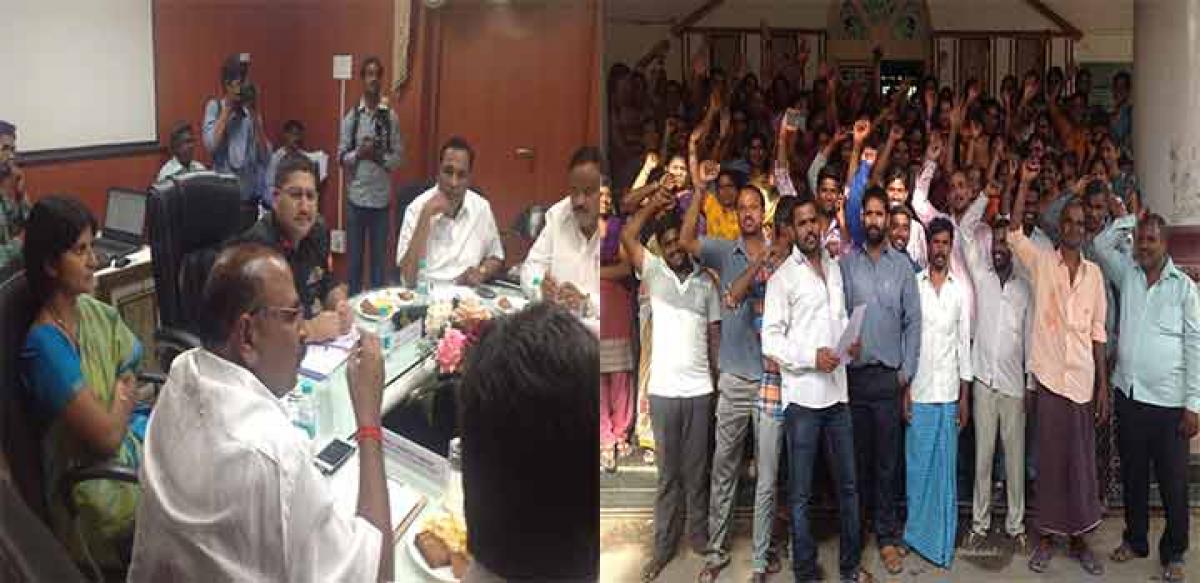 Even as the board’s meeting was on, a protest was staged by Annanagar Basthi Residents outside the SCB office as they receive water only once in 15 days instead of 10.