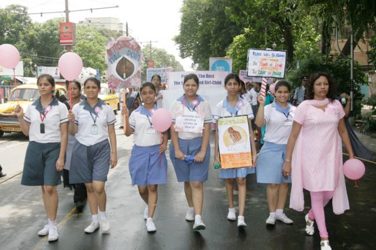 Around 2,000 students from the Ashok Hall School in Kolkata observed the day by staging a rally to protest oppression of women.