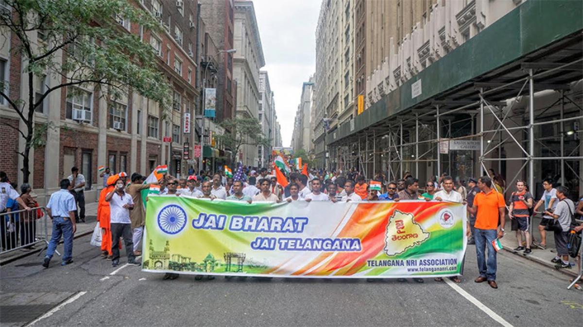 న్యూ జెర్సీ , ఒహాయో, మిషిగన్, మినియాపాలిస్ తదితర ఉత్తర అమెరికా కు చెందిన అనేక ప్రాంతాల నుండి తెలంగాణ యెన్నారైలు పురుషులు, మహిళలు చిన్నారులు అత్యుత్సాహంగా పాల్గొన్నారు. మహిళలు బతుకమ్మలు ఆడుతూ, బోనాలెత్తుతూ, డప్పు దరువులకు పురుషులు ధూలా, తీన్మార్లు వేస్తుండగా, తెలంగాణ ఎన్నారైలు నాలుగు వందల కు పైగా కుటుంబ సమేతంగా ఊరేగింపుకు ముందుండి సాగారు. ఇండియా ఇండిపెండెన్స్ పరేడ్లో గంటకు పైగా జై తెలంగాణ నినాదాలతో న్యూయర్క్ నగరం మార్మోగింది. తెలంగాణ సాంస్కృతిక చిహ్నాలతో అలంకరించిన రథం అలరారింది. సకల సంస్కృతుల సమ్మేళనమై, దేశదేశాల సముద్రాల నీళ్లతో కళకళలాడే న్యూయార్క్ మహానగరం తెలంగాణ సాంస్కృతిక సంరంభమై ఉవ్వెత్తున ఎగసింది, బంగారు తెలంగాణ రాష్ట్రాన్ని నిర్మించుకోవాలనే స్వప్నంతో పాల్గొన్న యెన్నారైల ఆకాంక్ష ఊరేగింపులో అడుగడుగునా ప్రస్ఫుటమయింది. యావత్ప్రపంచమూ 29వ నూతన రాష్ట్రం నవ నవోన్మేష తెలంగాణ వైపు చూసేలా, తెలంగాణ ఎన్నారై అసోసియేషన్ నిర్వహించిన ఊరేగింపు అద్భుతంగా విజయవంతమైంది.