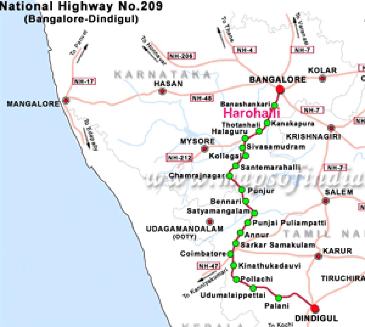 NH-209 Extended Upto Kanakpura. National Highways Authority of India has taken up upgradation of NH-209 from Bangalore to Dindigul.