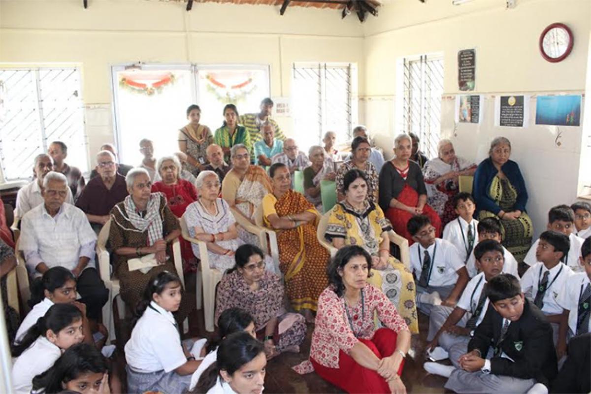 Bengaluru: Over 100 students of Greenwood High International School today Asha Jeevan, an old age home at Bannerghatta Road which houses senior citizens who are physically ailing and suffering from age- related mental disorders.