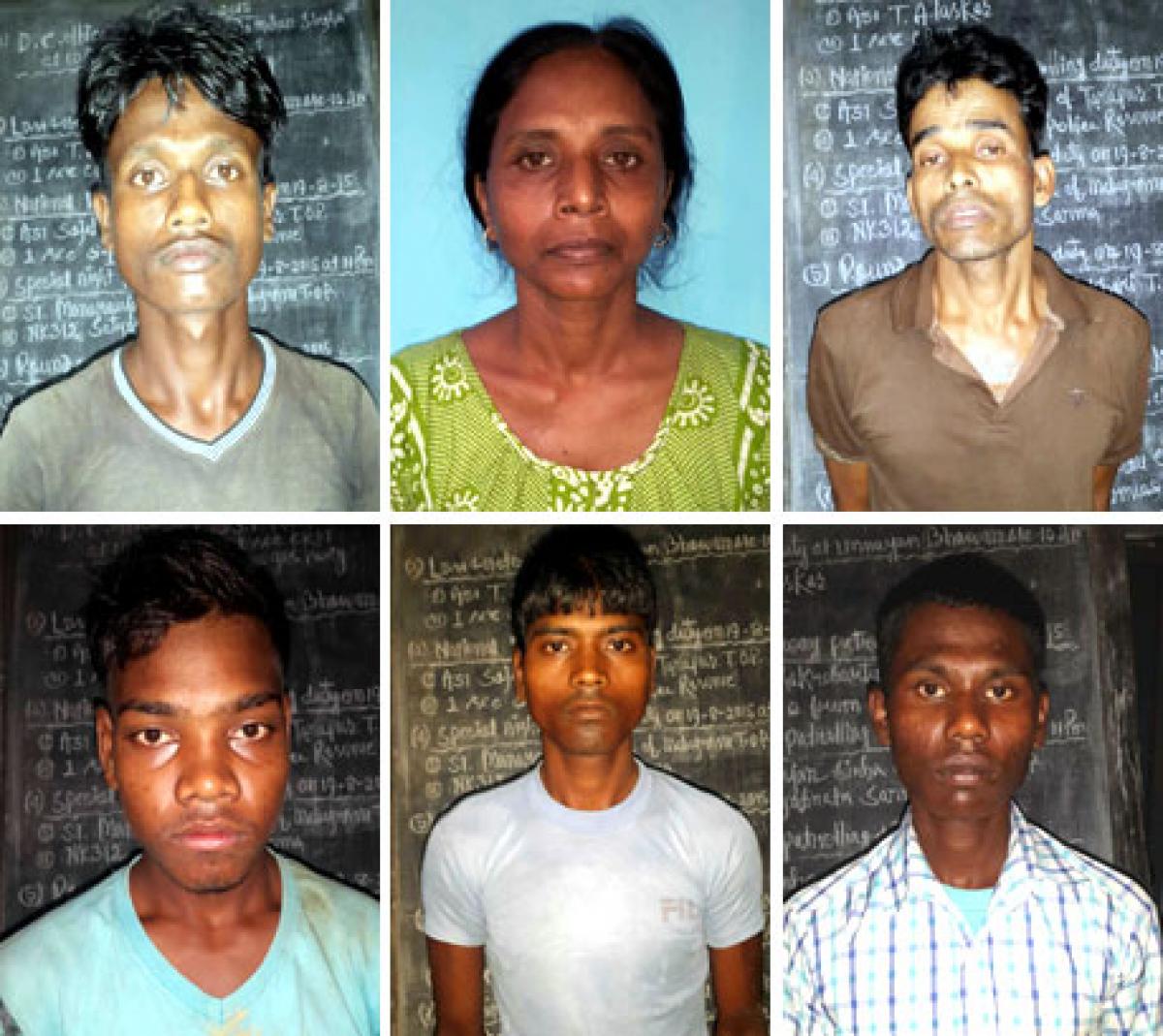 The nabbed maoists were identified as Nirmala Biswas alias Swapna Choudhury from West Bengal, Amiruddin Ahmed alias Bikash, Siddan Orang, Biju Orang, Bipon Orang and Biful Orang.