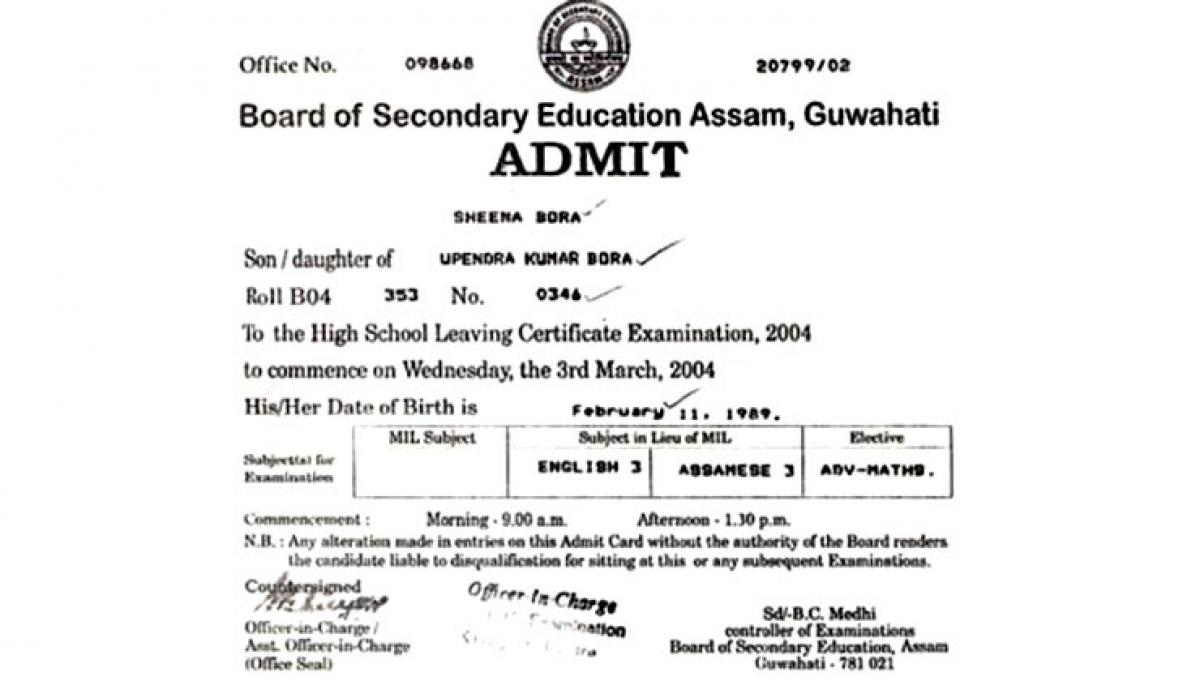 The diary of Sheena Bora revealed that Siddartha Das is the father of Sheena, but her admit card of High School Leaving Cetificate (HSLC) examination shown that Upendra Kumar Bora is the father of Indrani Mukherjea’s daughter.