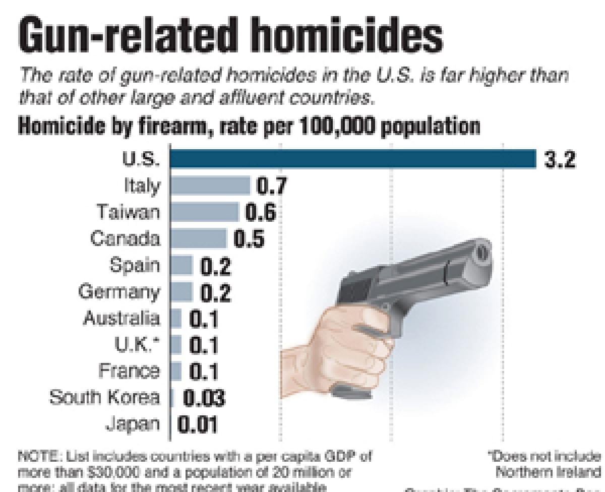 Whereas America, which has an estimated 270 million to 310 million firearms in circulation or nearly one for every one of its 319 million people, has seen 90 mass shootings between 1966 and 2012, according to a new study cited by CNN. This makes up nearly a third of the 292 such attacks globally for a country which has only five percent of the world's population. More restricted gun laws do make a difference, according to the study by Adam Lankford, an associate professor of criminal justice at the University of Alabama.