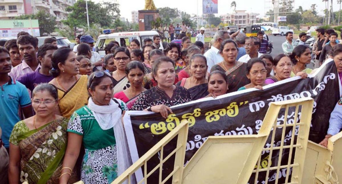 - ‘Mahila Garjanas’ organised in Kakinada, Rajahmundry, Tirupati, Srikakulam