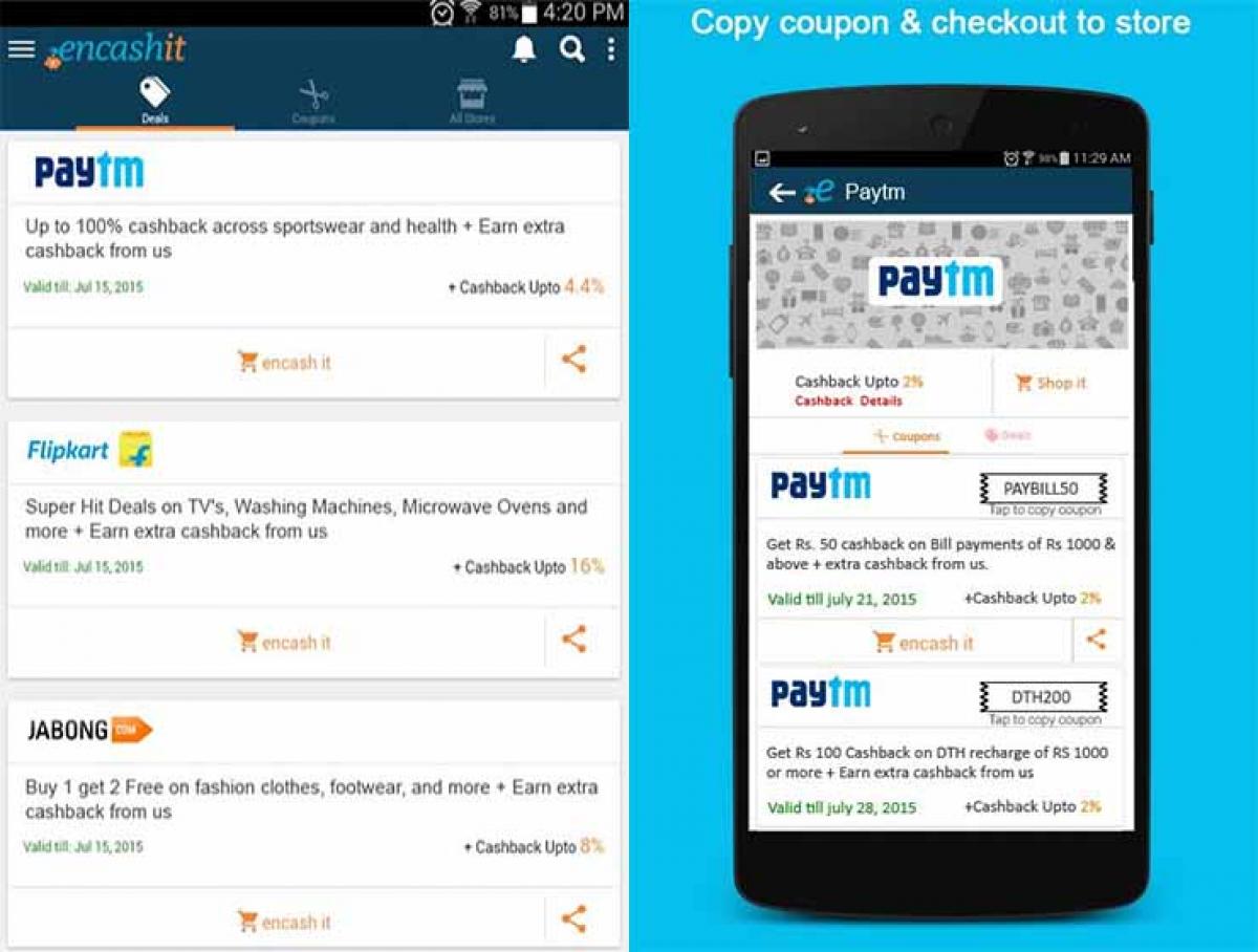 ENCASHIT – The Cashback Mobile app. Encashit – The coupons & cashback mobile app which enables users to shop online on multiple stores and earn cashback.