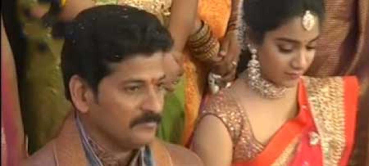 TDP MLA Revanth Reddy\'s daughter Nymisha Reddy was engaged to Satyanarayan Reddy in a grand betrothal ceremony at the N Convention Centre in hyderabad on Thursday.