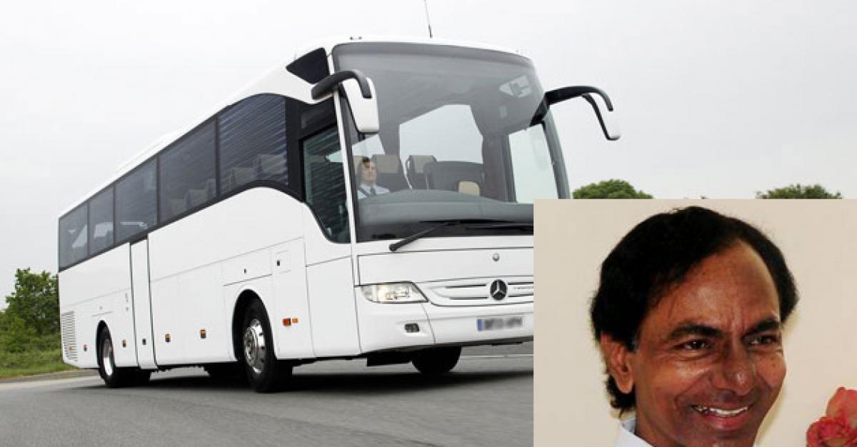 Chief Minister K Chandrashekar Rao on Sunday travelled by the new Mercedes Benz luxury bus during his visit to the district. Earlier, the Chief Minister expressed his anger over spending Rs 5 crore on the bus. KCR boarded the bus after planting a sapling and addressed a largely-attended meeting on Dharmaram Market Committee premises.