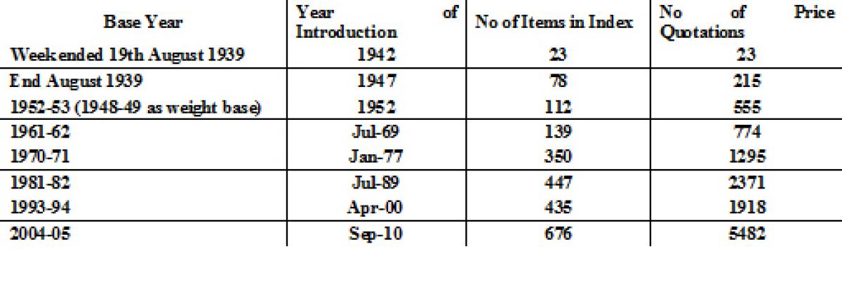 The earlier CPI (UNME) series, with 1960 as base year, had as its source of weights, results of a middle class family living survey, conducted by CSO in 1958-59 in 45 selected urban centres. The survey basically covered urban families who derived major portion of their income from non-manual occupations in the non-agricultural sector.