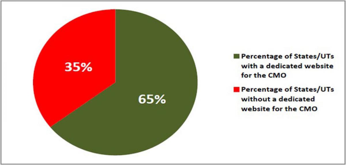 Out of the 31 States/UTs, only 20 (65%) of them have a dedicated website for the CMO.Surprisingly, 11 (35%) States/UTs do not have a dedicated website for the CMO, including Punjab, Maharashtra, Delhi and Tamil Nadu.
