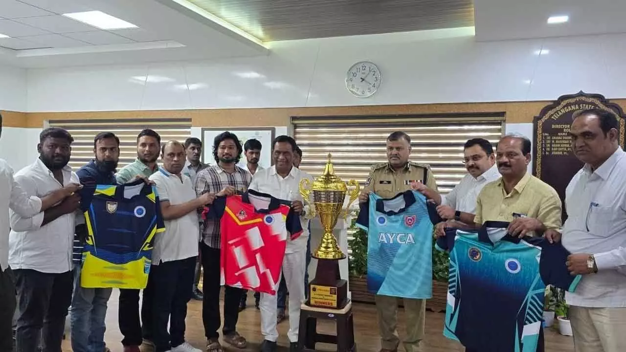 Telangana DGP Jitender unveiled the trophies and jerseys of this tournament on Thursday at his office. ‘It is commendable that the tournament is being organised with the American Youth Cricket Academy to provide international level competitiveness to Telangana rural cricketers. This tournament is a good platform for rural cricketers to prove their mettle and potential. Congratulations to TDCA for its efforts in developing cricket at the grassroots level,” said DGP Jitender on the occasion of the trophy launch.