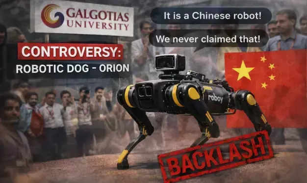 Galgotias University got caught into a robodog controversy after exhibiting a robotic dog,named “Orion,” at the AI Summit robodog presentation in New Delhi. This controversy sparked debates over its origin and authenticity after critics pointed out that the robodog was actually a Chinese-made Unitree model.