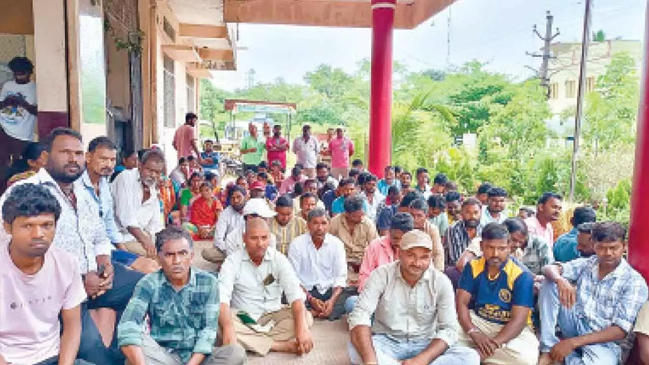 Kagaznagar: Demanding immediate payment of ESI dues and access to medical facilities, the contract workers staged a protest at the Kagaznagar Municipal Office on Friday.
