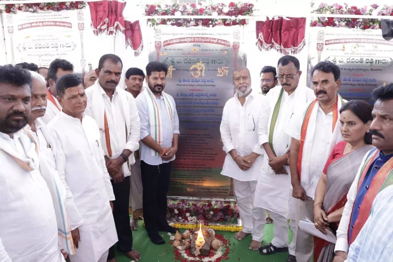 CM Revanth Reddy Performs Bhoomi Pooja at Sri Lakshmi Venkateswara Swamy Temple