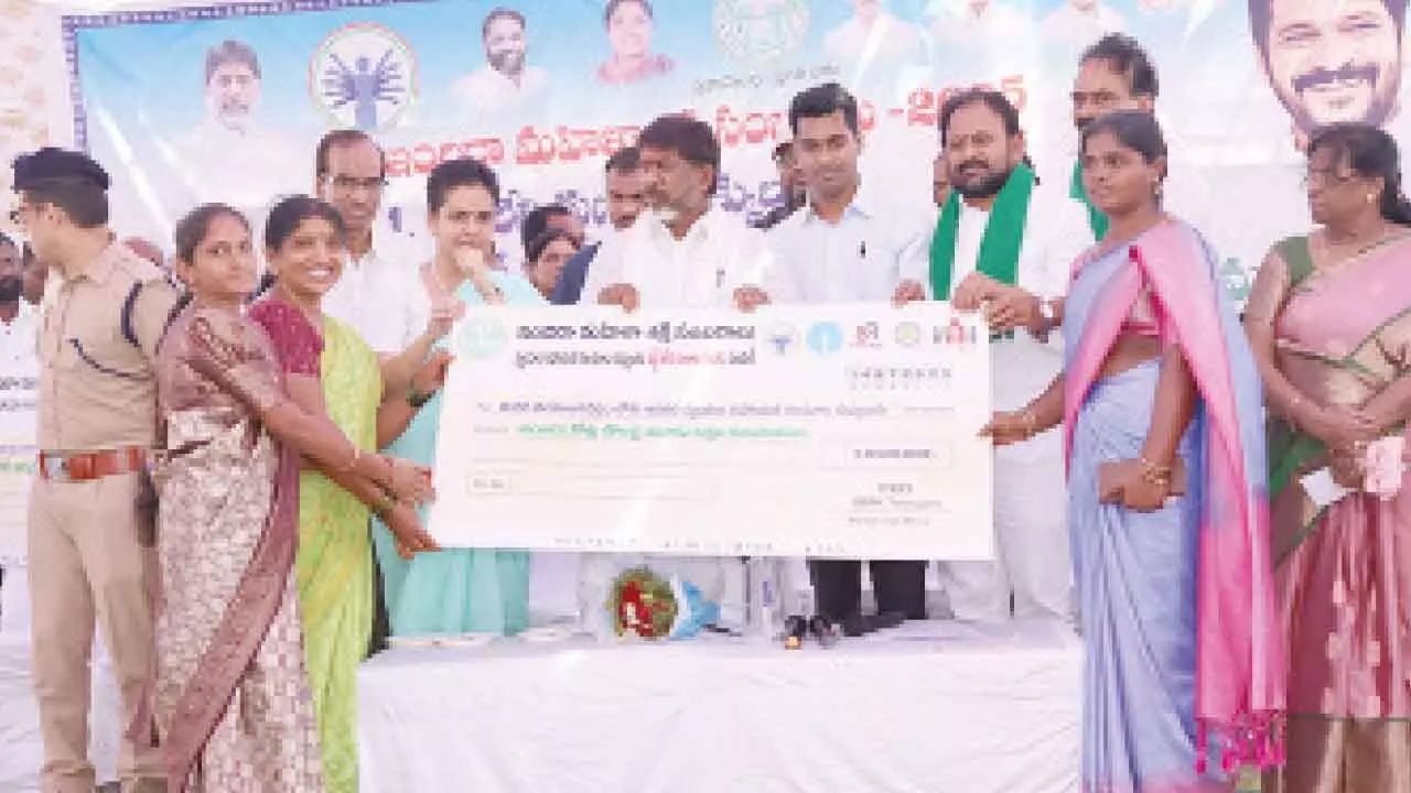 Madhira (Khammam): Deputy CM Bhatti Vikramarka Mallu announced that the government aims to make one crore women millionaires by distributing Rs 1 lakh crore in interest-free loans over five years. Speaking at the Indira Mahila Shakti Sambarala, he distributed interest-free loan cheques, loan insurance, accident insurance cheques, and sanction documents to beneficiaries of Indiramma houses of Chintakani mandal on Monday.