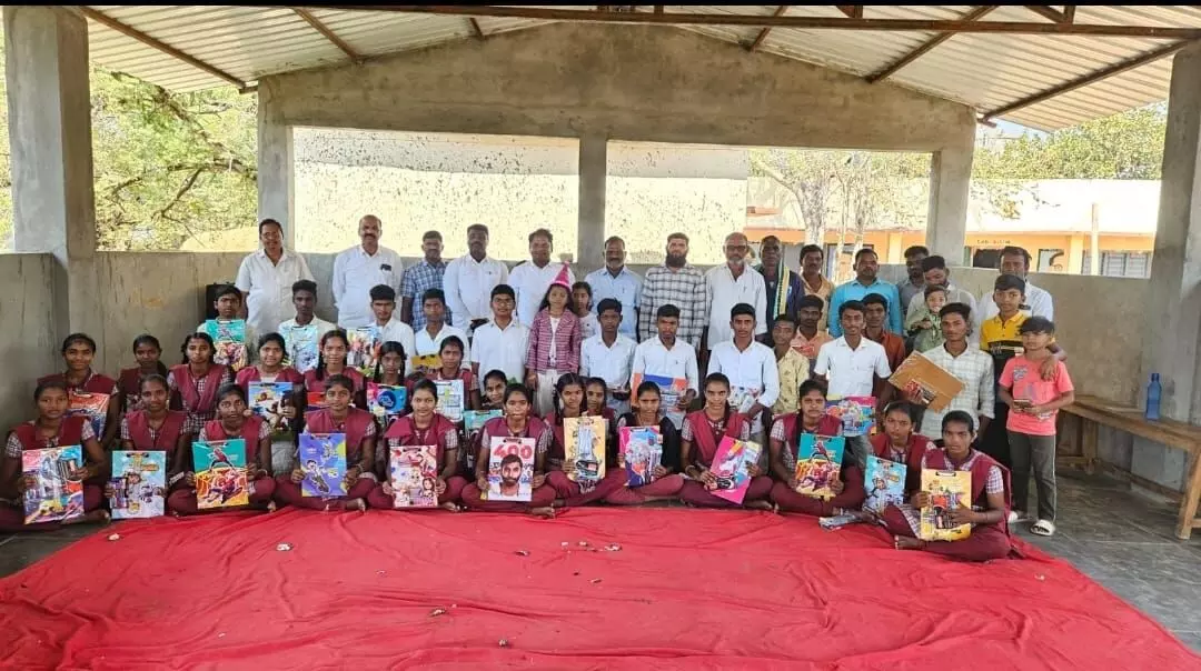 On Monday, free exam materials were distributed to students of the Medikonda Government School in the Aija Mandal.
